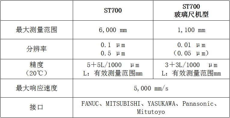 *1 請各個制造商詢問適用系統(tǒng)的詳細(xì)情況(可連接)。 *2 ENSIS 是三豐公司的注冊商標(biāo) ABS ST700系列技術(shù)參數(shù):