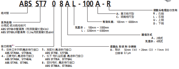 產(chǎn)品介紹ABS ST700/ST700L電磁感式絕對光柵尺 ,量程6米,顯示精度0.1um/0.5um/0.01um/0.05um高頻率及穩(wěn)定性。 ABS ST700系列特點(diǎn): 1、抗污染強(qiáng) 2、適合線性電機(jī) ABS ST700系列解決方案: ●線性電機(jī)用反饋?光柵尺 1.因?yàn)槭墙^對式光柵尺 適用于日本廠家伺服放大器接口