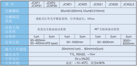 JCXE11μm50~1000mm20m/min±5μm±3μm±8μm±5μm
