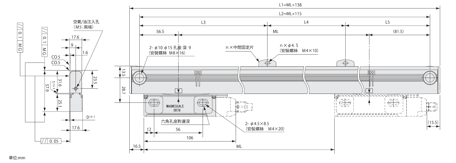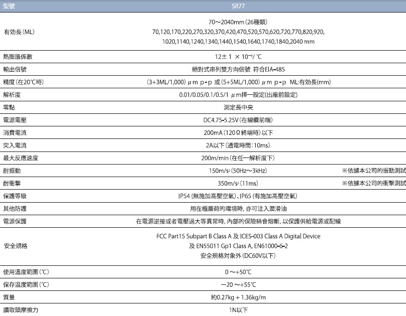 Magnescale  SR77絕對式磁尺.優異的耐久性及高精度,超高速反應,輸出信號為絕對式串列雙方向信號(符合EIA-485);最適合用在精密平臺定位。