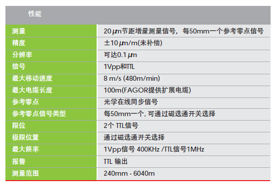 產品介紹開放式光柵尺EXA相當于雷尼紹RGH22/RGS20 FAGOR開放式光柵尺EXA 優于雷尼紹RGH41敞開式光柵尺|開放式光柵尺有以下特點:1.非接觸式光柵尺用于高精度、高速場合如:直線電機、三坐標測量儀、影像全自動測量儀、PCB貼片機、雕刻機。 8.R2讀數頭其掃描頻率可達1MHZ其尺寸僅僅12MM*18MM*46MM要遠遠小于海德漢和雷尼紹的相同類型的產品。 非接觸式光柵尺用于高精度場合