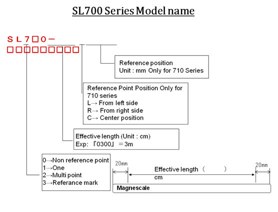 產品介紹SL700/SL720光柵尺|鋼帶尺,和PL101R讀數頭配套使用,精度5um/m SL700 光柵尺series has 4 kind of scale *Reference mark types. SL700 ( None ) SL710 ( Single ) SL720 ( Multiple ) SL730 ( Coded )